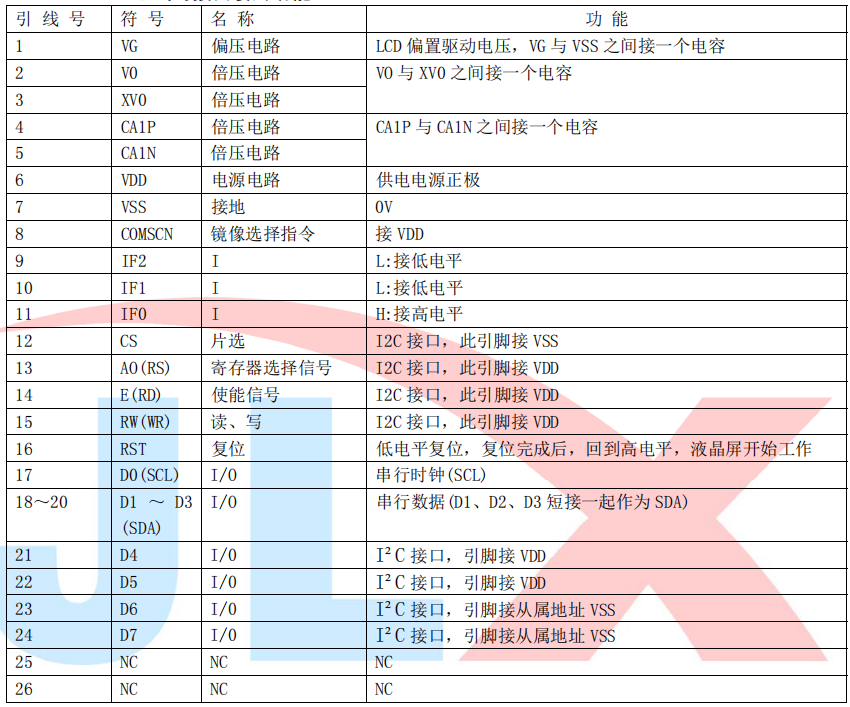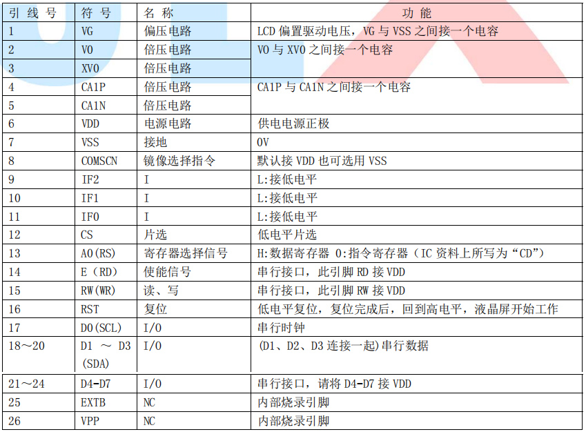 (2)四线串行时接口引脚功能