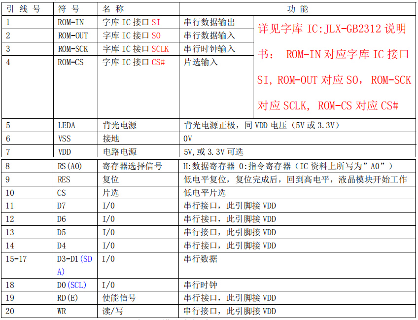 (2)四线串行时接口引脚功能