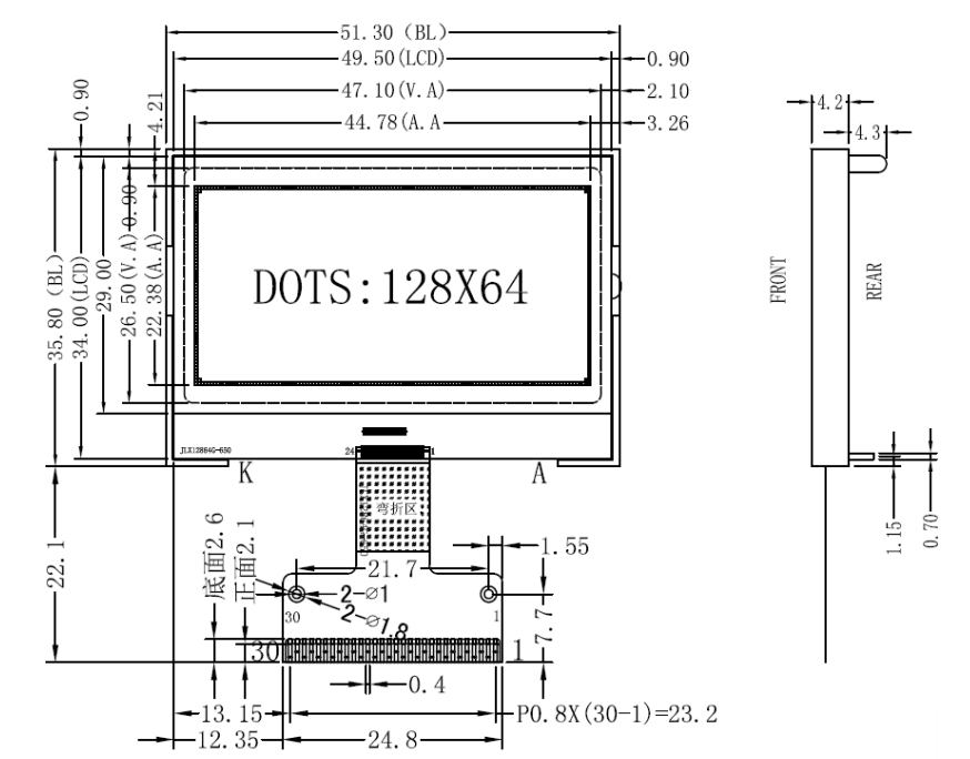 JLX12864G-650-BN(焊接式FPC)