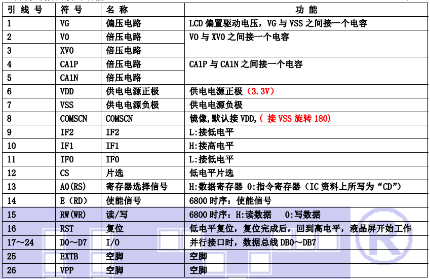 (1)并行时接口引脚功能: