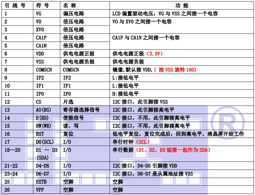 (3)I²C 总线时接口引脚功能: