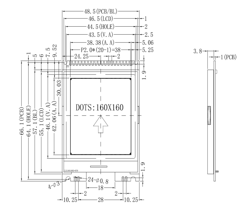 1. 结构牢。2. IC 采用矽创公司 ST75256,功能强大,稳定性好3. 功耗低。4. 接口简单方便:可采用 4 线 SPI 串行接口、并行接口,I2C 接口。5. 工作温度宽:-20℃ ∽ +70℃;6. 储存温度宽:-30℃ ∽ +80℃;7. 显示内容:●160*160 点阵单色或 4 灰度级图片;●或显示 5 个×5 行 32*32 点阵的汉字;●或显示 6 个×6 行 24*24 点阵的汉字;●或显示 10 个×10 行 16*16 点阵的汉字;●或显示其他的 ASCII 码等;8. 液晶模块是易碎的玻璃盒,请小心使用,轻拿轻放