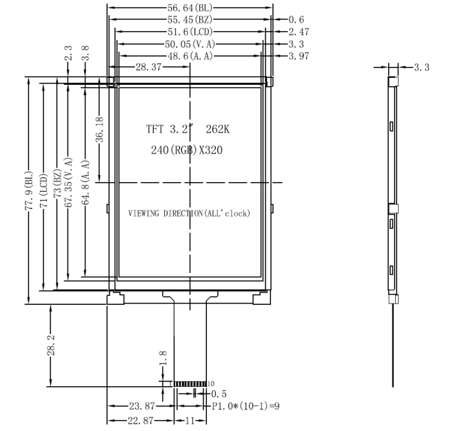 8. TFT 模块是易碎的玻璃盒,请小心使用,轻拿轻放