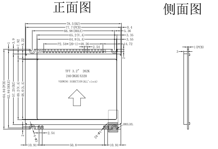8. TFT 模块是易碎的玻璃盒,请小心使用,轻拿轻放