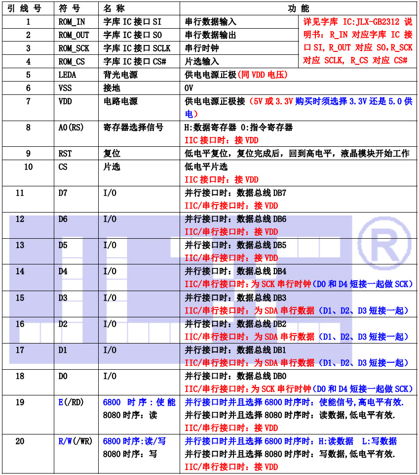 IC: ST7525(驱动IC) +JLX-GB2312(字库IC)