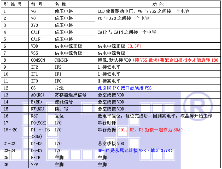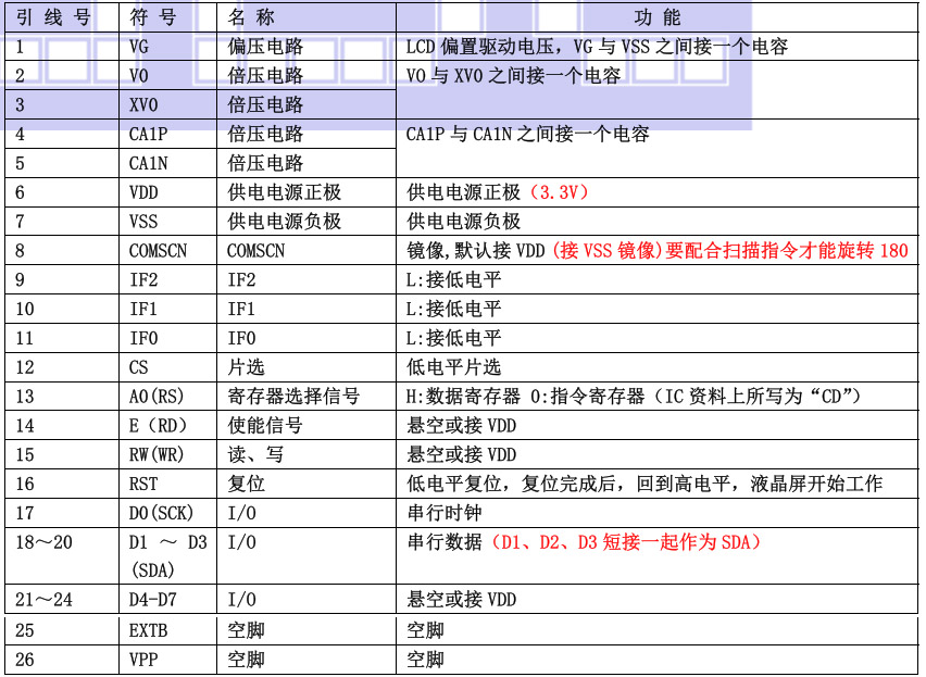 (2)四线串行时接口引脚功能