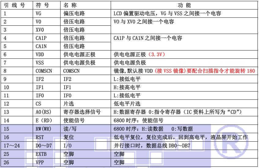 (1)并行时接口引脚功能