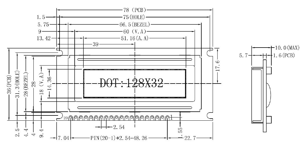 ● 128*32 点阵单色图片;或 8 字*2 行汉字、字符、数字;半角字符、数字可显示 16 字*2行。