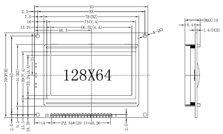 2. IC 采用矽创公司ST7920,功能强大,稳定性好