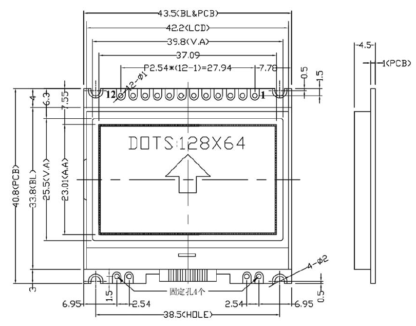 (3)按照12*12 点阵汉字来计算可显示10 字*4 行;