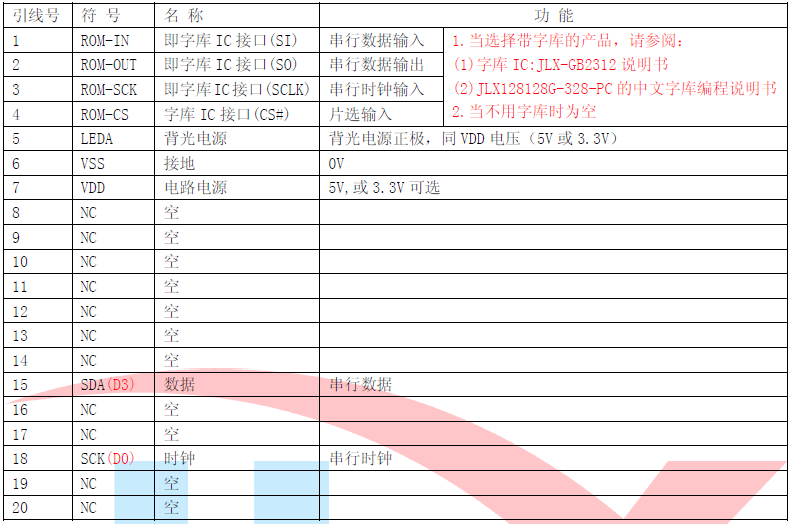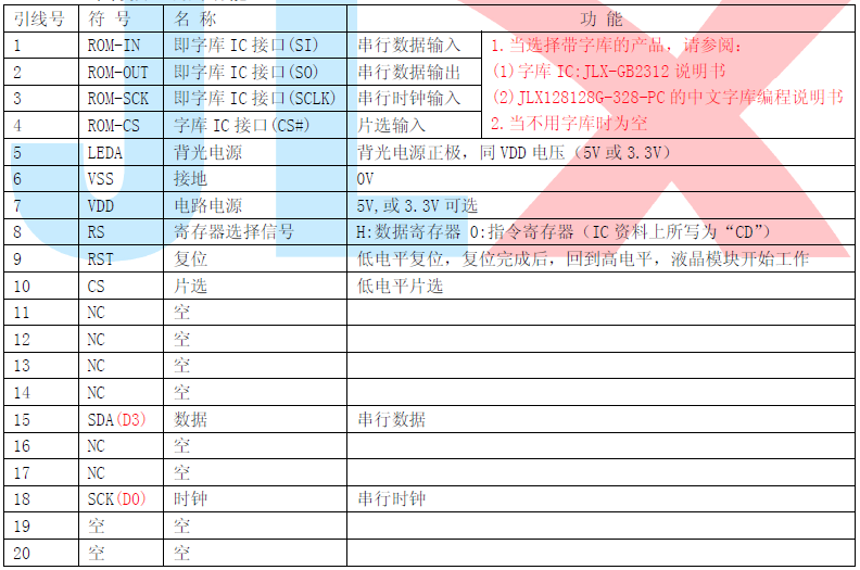 (2)四线串行时接口引脚功能: