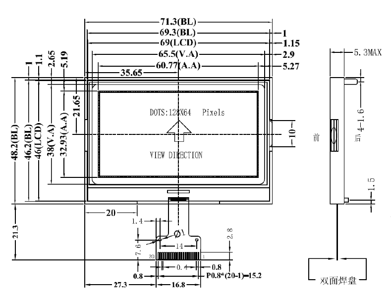 2.IC 采用矽创公司 ST7567,功能强大,稳定性好