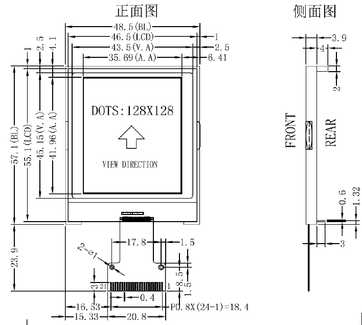 3.功耗低:1 - 100mW(不开背光1mW <3.3V@0.3mA>,开背光不大于100mW<3.3V@30mA>);