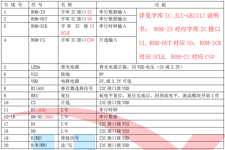 (2)四线串行时接口引脚功能