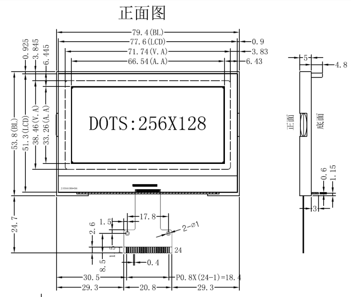 ●或显示32 个×8 行=256 个的8*16 点阵的英文、数字、符号。