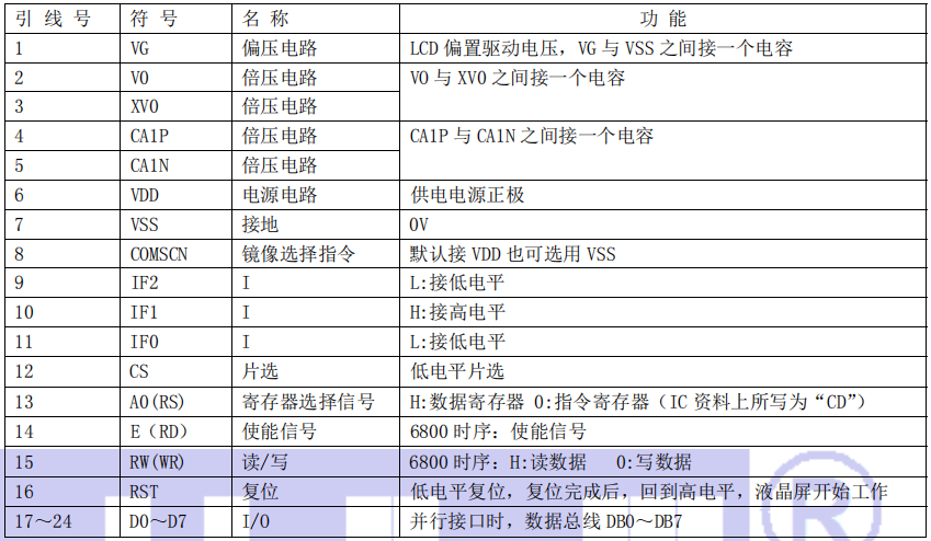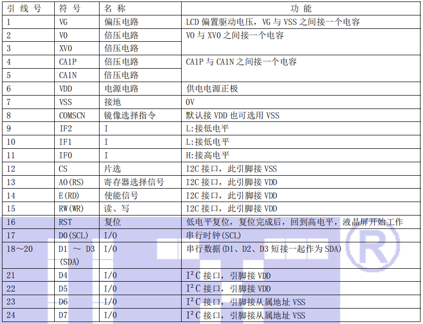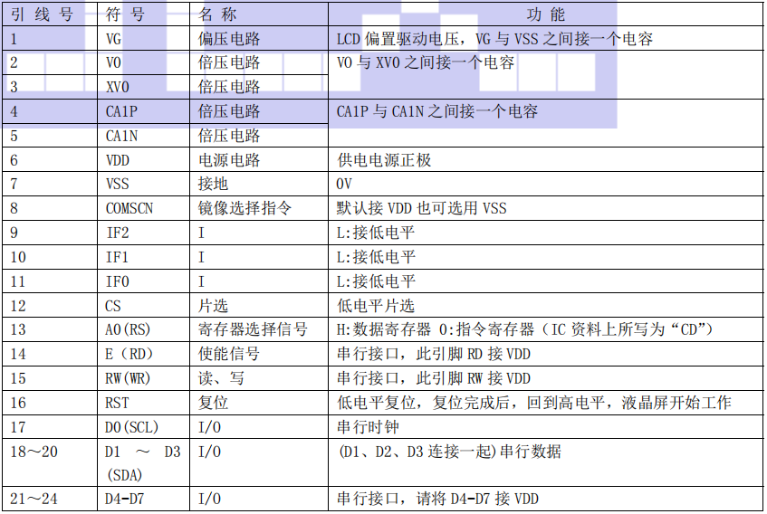 6. 接口简单方便:可选I²C 总线、4 线SPI 串口、6800 系列并口、8080 系列并口。