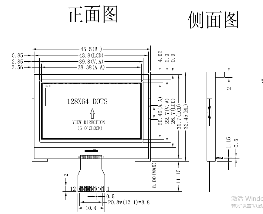 3. 功耗低:不带背光1mW(3.3V*0.3mA),带背光不大于150mW(3.3V*45mA)