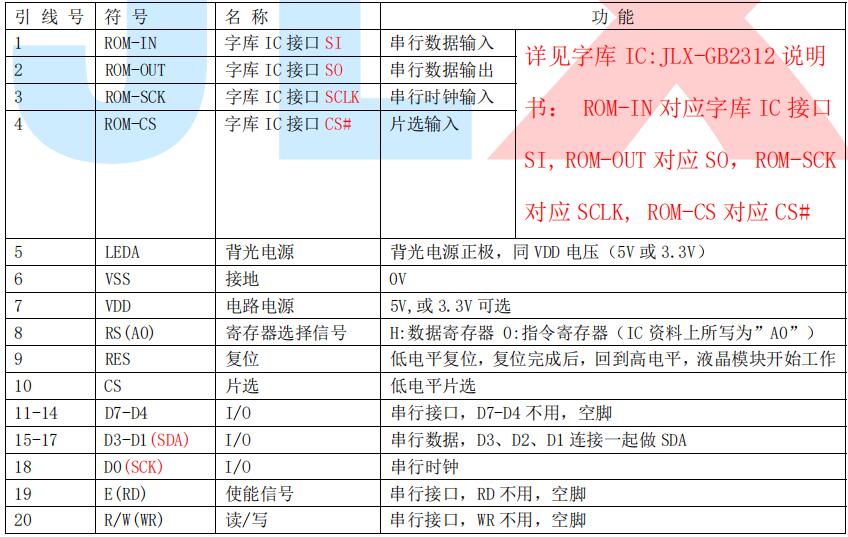 (2)四线串行时接口引脚功能