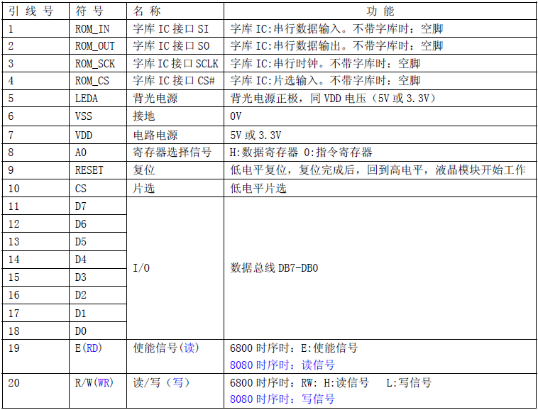 8.可以选择带字库IC(IC 型号:JLX-GB2312-3205,此IC 为可选的配件)