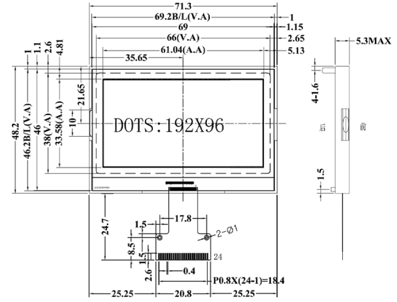 3. 功耗低:1 - 100mW(不带背光1mW <3.3V@0.3mA>,带背光不大于100mW<3.3V@30mA>);