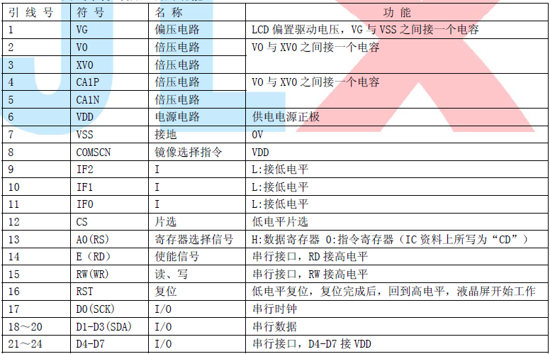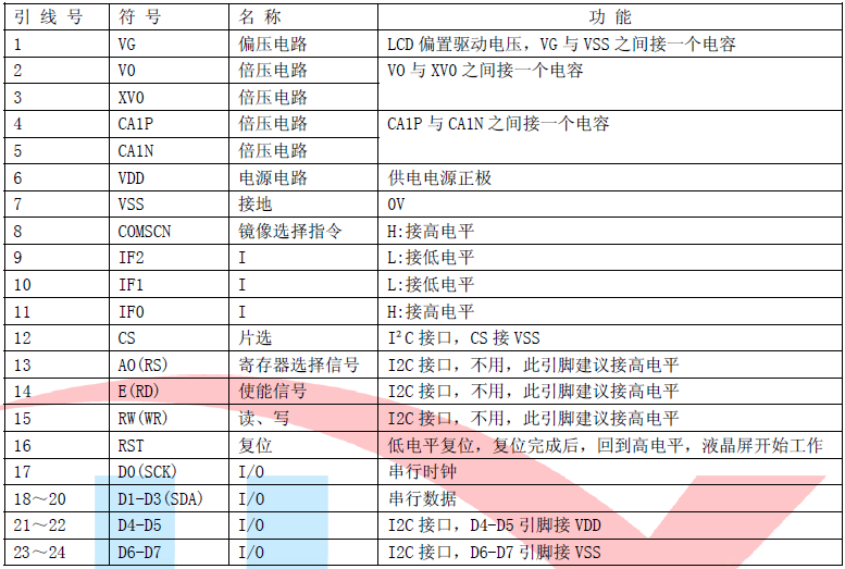 6. 接口简单方便:可选I²C 总线、4 线SPI 串口、6800 系列并口、8080 系列并口。