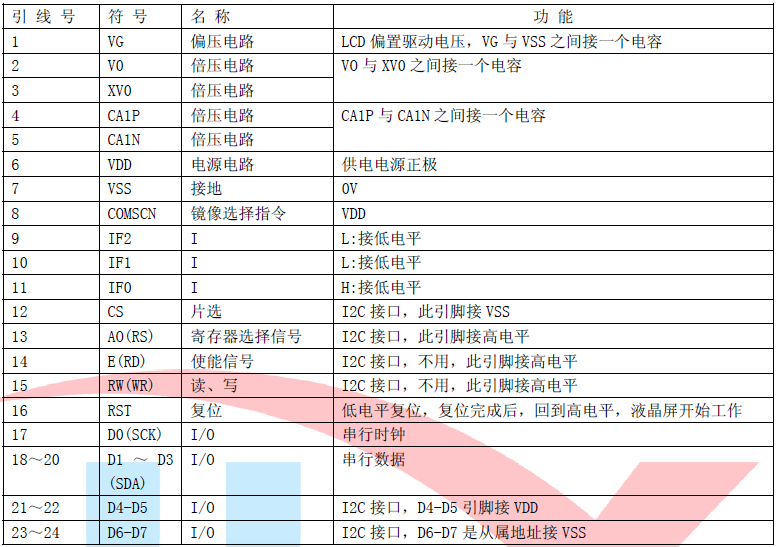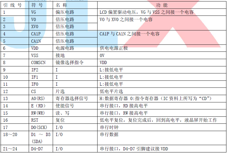 6. 接口简单方便: 采用4 线SPI 串行接口,或选择并口(6800 时序和8080 时序可选),或I2C