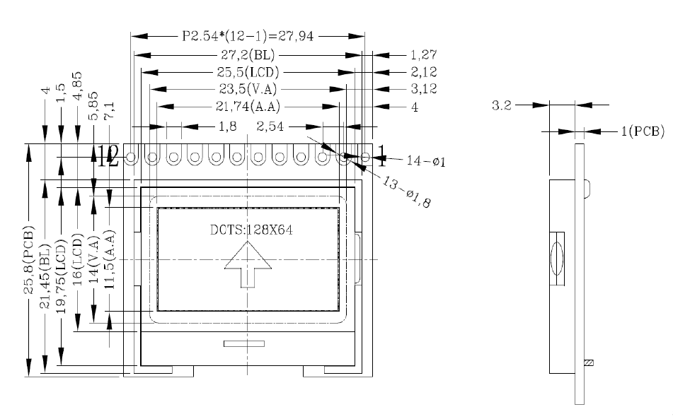 5. 指令功能强:可软件调对比度、正显/反显转换、行列扫描方向可改(可旋转180 度使用)。