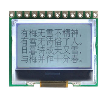 (2)可选用16*16 点阵或其他点阵的图片来自编汉字,按照16*16 点阵汉字来计算可显示8 字*4 行;