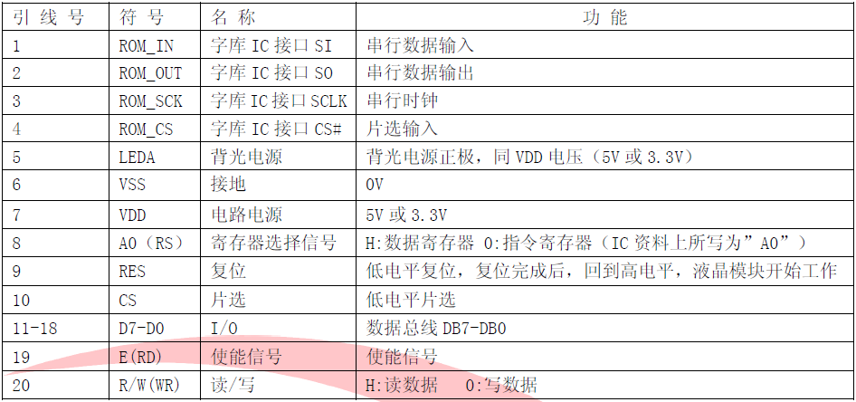 (1)并行时接口引脚功能
