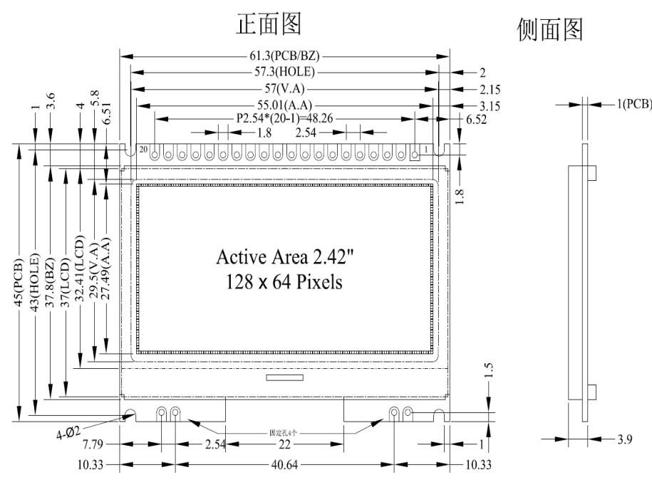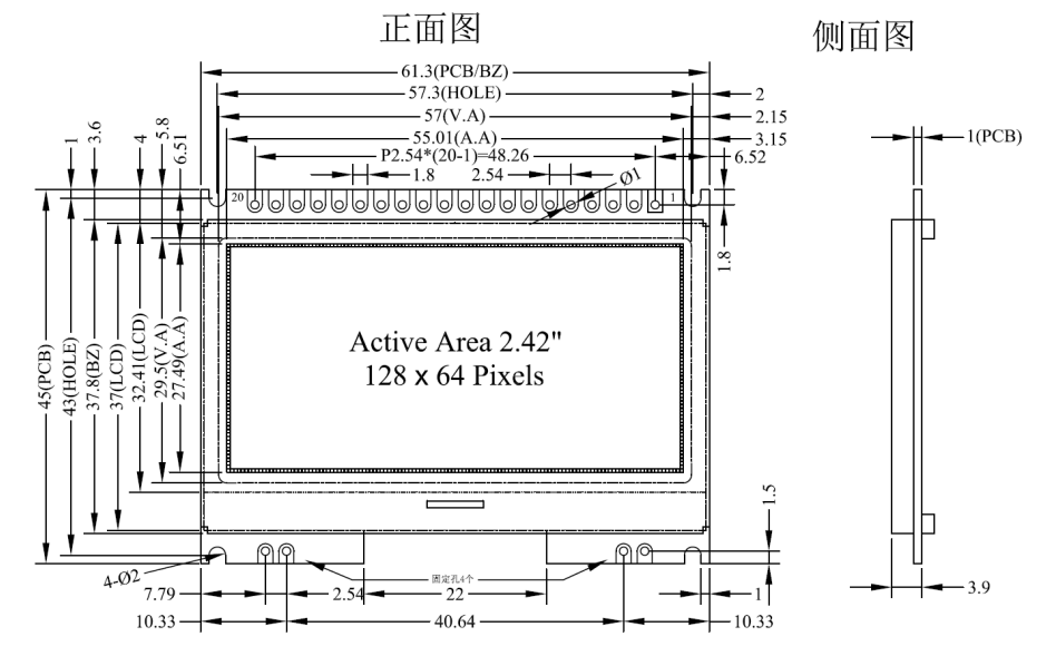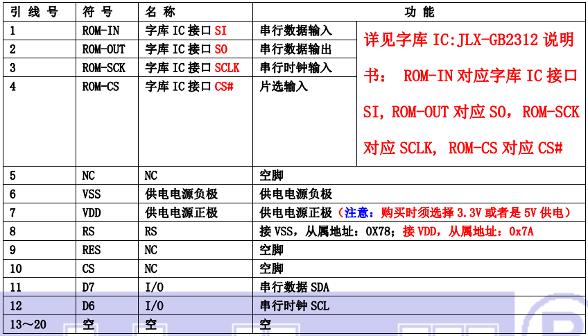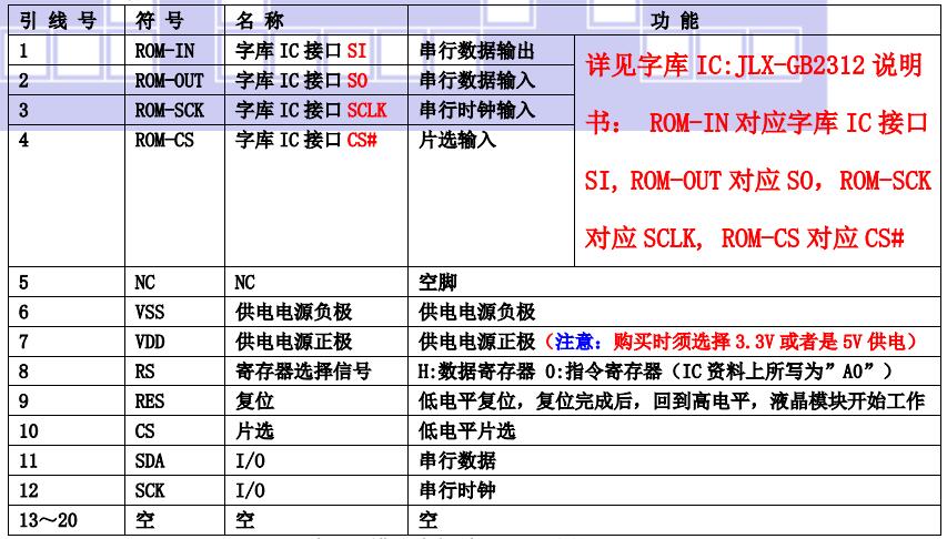 6. 接口方式:并口,4 线SPI 串口,I2C 接口。