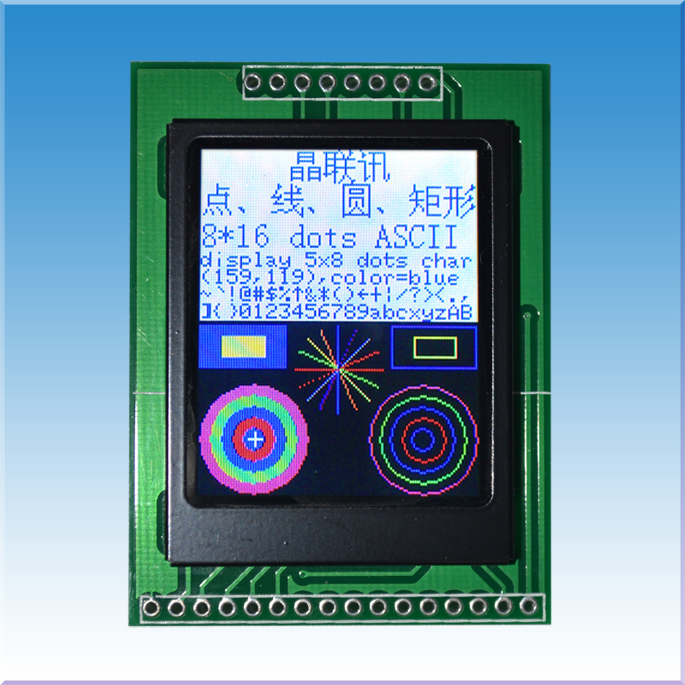 并且在开发过程中运用晶联讯电子已完成的画点、画线、画圆、画矩形的范例程序,可以方便地用TFT彩屏画出各式表格、统计图、波形、动画。