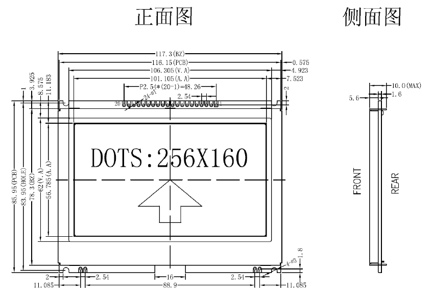 2.IC 采用矽创公司ST75256,功能强大,稳定性好