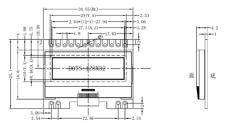 3.功耗低:1~100mW(关掉背光:0.3mA@3.3V,打开背光不大于 100mW);