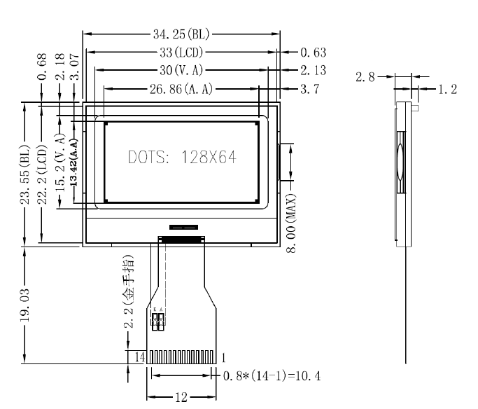 3.功耗低: 不带背光 1mW(3.3V*0.3mA),带背光不大于 100mW(3.3V*30mA);