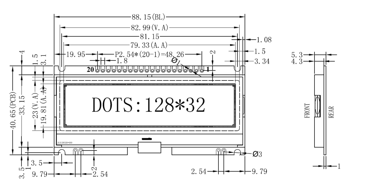 3. 功耗低:1~100mW(关掉背光:0.3mA@3.3V,打开背光不大于 100mW);