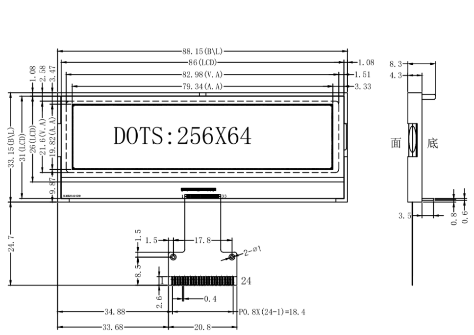 ●256*64 点阵单色图片。