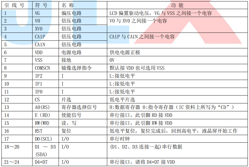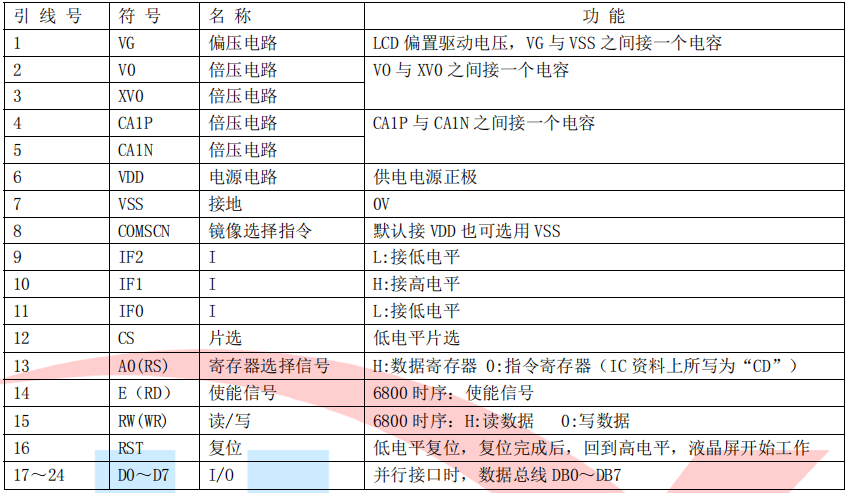 (1)并行时接口引脚功能: