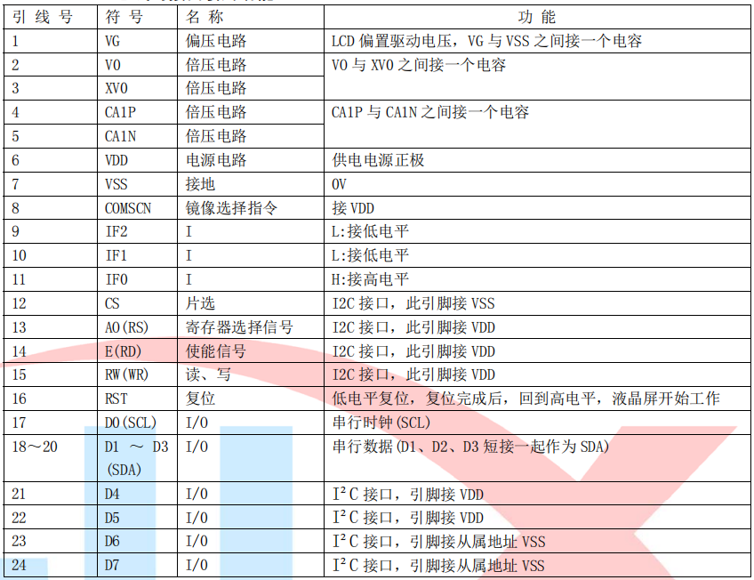 (2)I²C 总线时接口引脚功能: