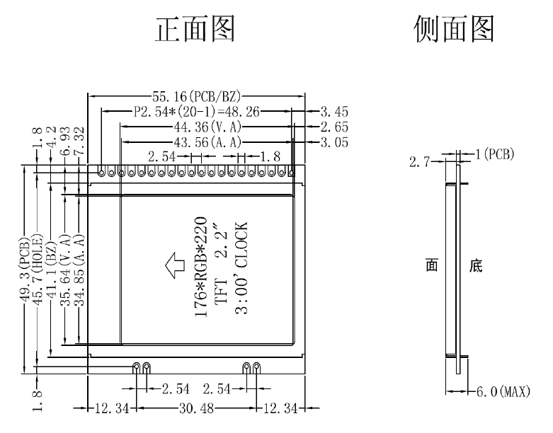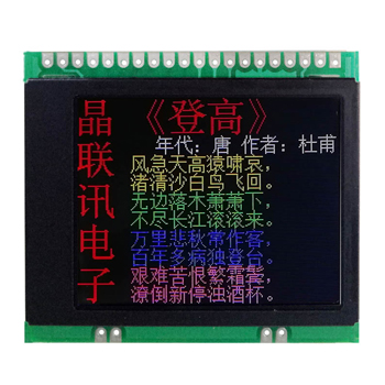 1. 结构轻、薄、带铁框。 2. IC 采用ST7775R,功能强大,稳定性好 3. 指令功能强:例如可以用指令控制显示内容顺时针旋转90、逆时针旋转90°或倒立竖放。 4. 接口方式:并口、串口。 5. 工作温度宽:-20℃ - 70℃; 6. 储存温度宽:-30℃ - 80℃;