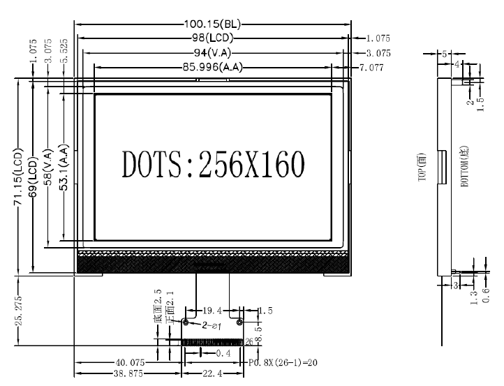 2. IC 采用矽创公司ST75256,功能强大,稳定性好
