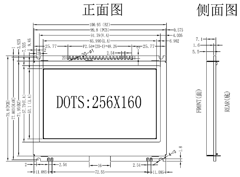 2. IC 采用矽创公司ST75256,功能强大,稳定性好