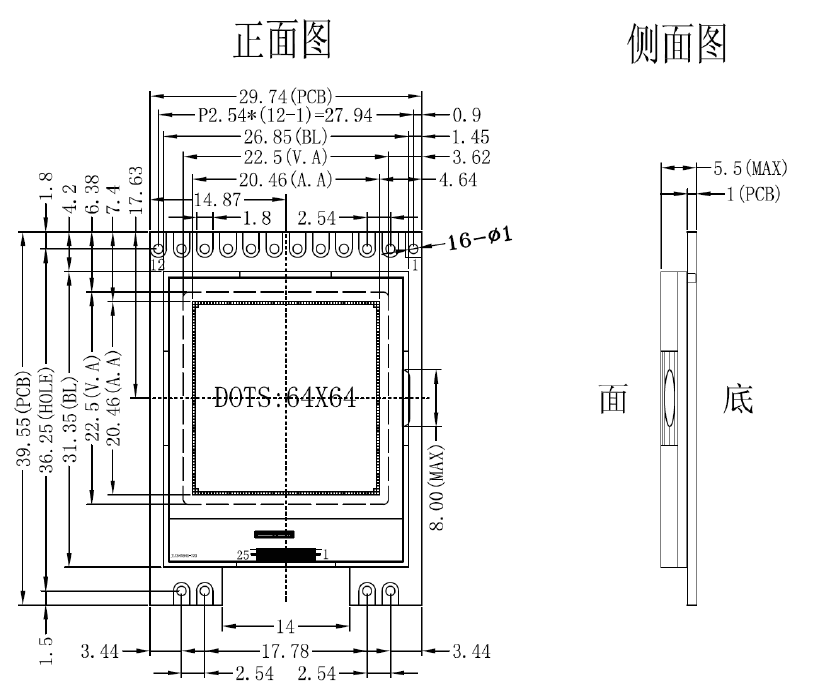 2. IC 采用矽创公司 ST7567,功能强大,稳定性好