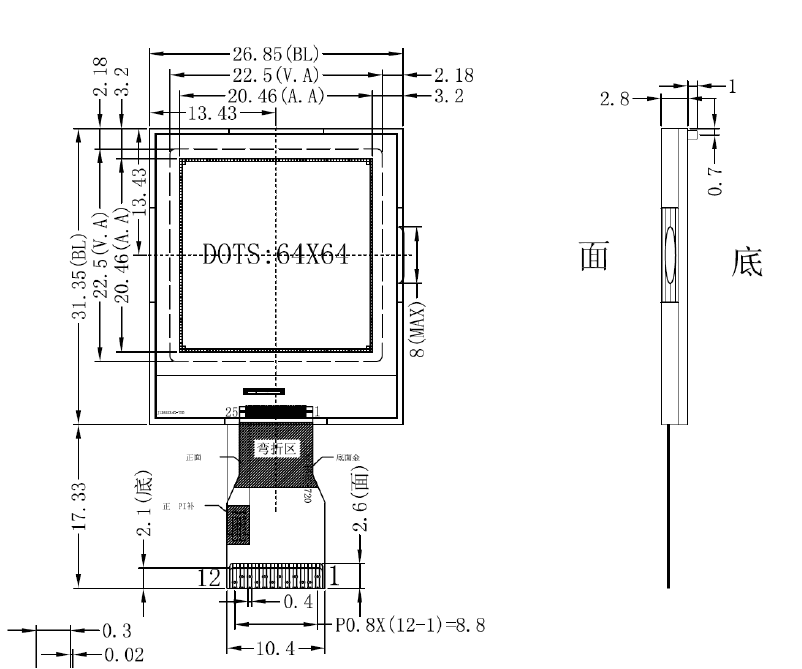 1.结构牢:背光带有挡墙,焊接式 FPC。