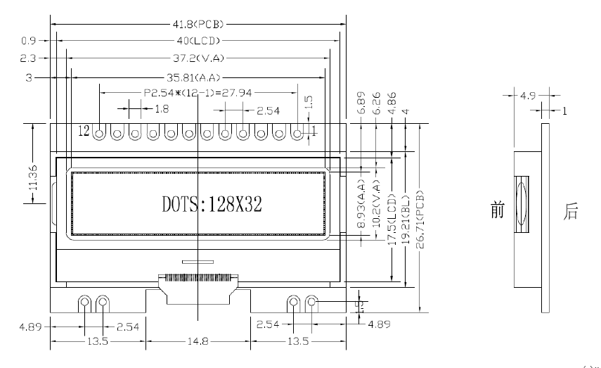 3.功耗低:1~100mW(关掉背光:0.3mA@3.3V,打开背光不大于 100mW);