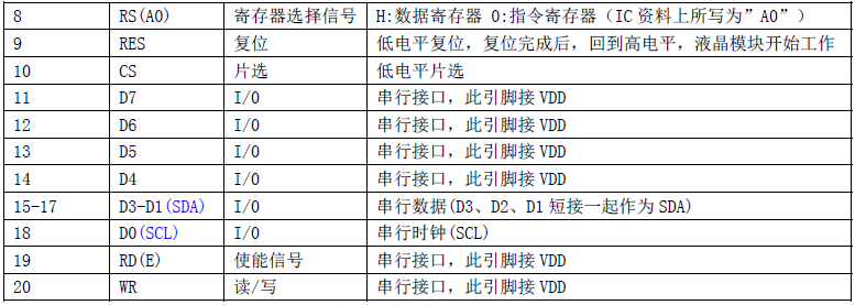 6. 接口简单方便:可选I²C 总线、4 线SPI 串口、6800 系列并口、8080 系列并口。