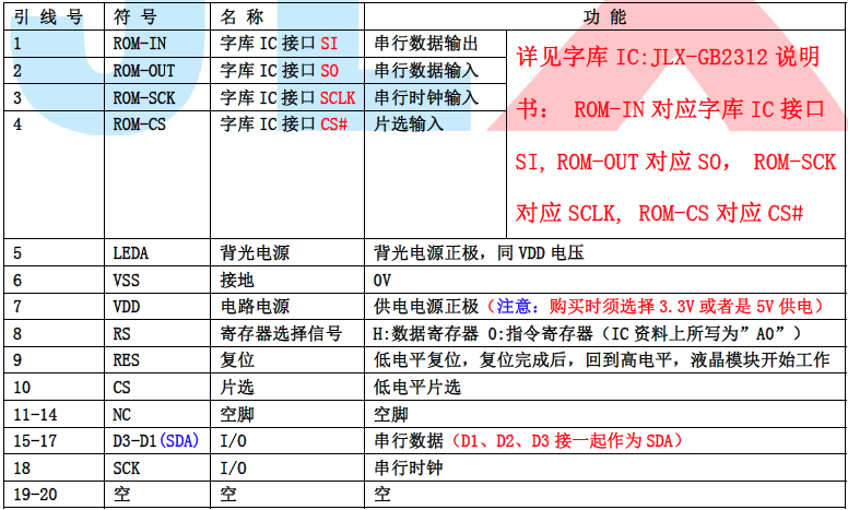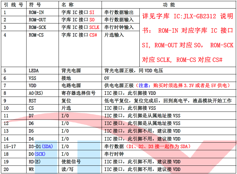 6. 接口简单方便: 采用串行接口,或选择并口(6800 时序和8080 时序可选),或I2C(IIC)