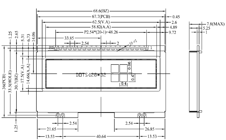 (4) 按照 5*8 点阵汉字来计算可显示 21 字*4 行;