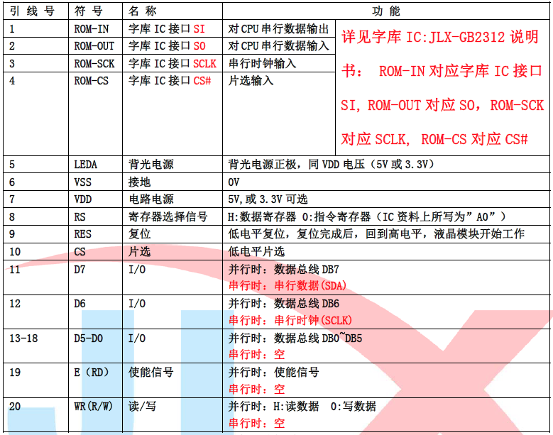 6. 接口简单方便:采用 4 线 SPI 串行接口,或选择并口(6800 时序和 8080 时序可选)。