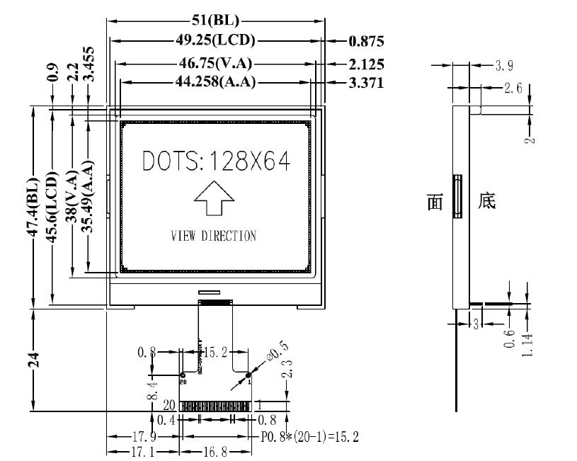 3. 功耗低: 不带背光1mW(3.3V*0.42mA),带背光不大于150mW(3.3V*45mA);