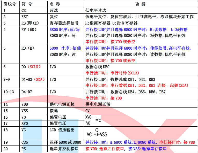 6. 接口简单方便: 采用4 线SPI 串行接口,或选择并口(6800 时序和8080 时序可选)。
